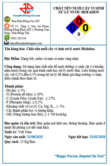 Mã sản phẩm: CHẤT NỀN NUÔI CẤY VI SINH XỬ LÝ NƯỚC HOFADON Thương hiệu: Việt Nam