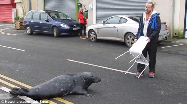 Chú hải cẩu này thật sự rất thông minh, dạn dĩ, nhưng cũng khá lười biếng, không chịu tự kiếm thức ăn cho mình mà lại chuyên đi “xin ăn” một cửa hàng hải sản ở thị trấn Wicklow, Ireland.
