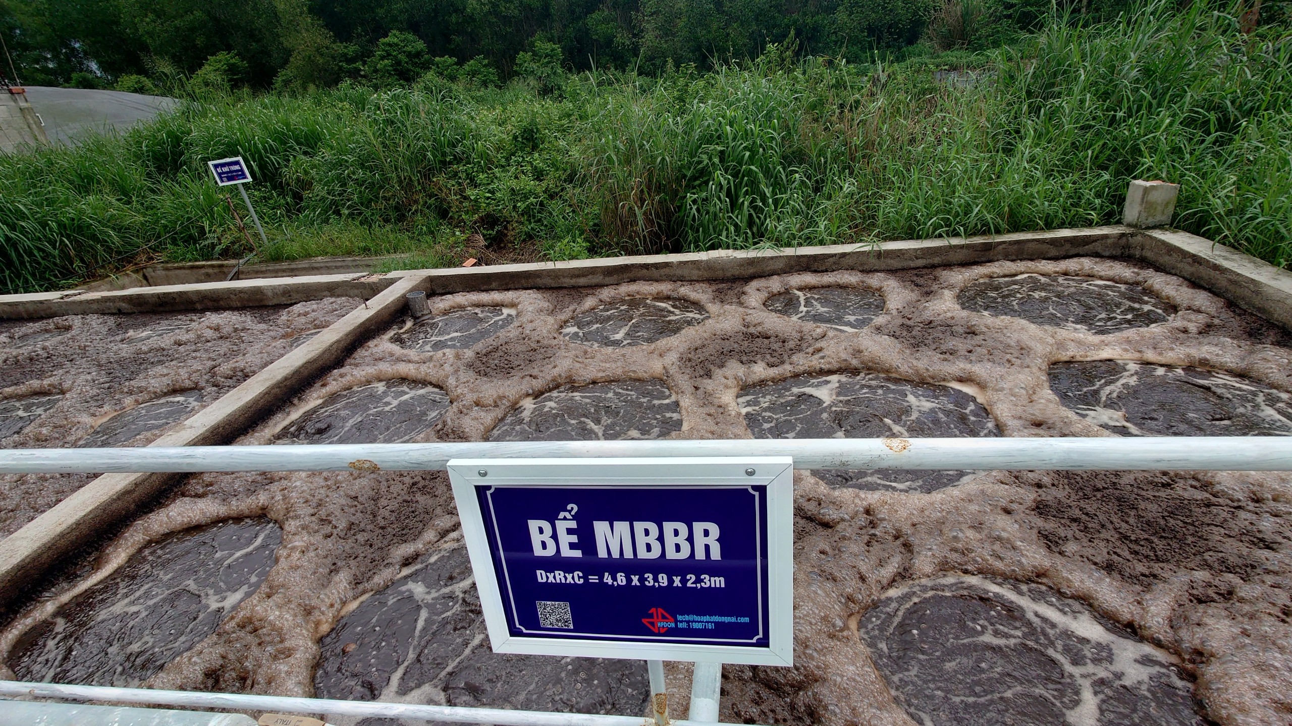 b) Bể sinh học MBBR: Sẽ sử dụng nhựa (giá thể vi sinh di động MBBR) trong bể sục khí để tăng lượng vi sinh vật có sẵn để xử lý nước thải. Các vi sinh vật sẽ phân hủy hết các chất hữu cơ có trong nước thải. Tiếp đó, hệ thống thổi khí sẽ giúp khuấy trộn các giá thể trong bể nhằm đảm bảo các giá thể vi sinh được xáo trộn liên tục trong quá trình xử lý nước thải. Công nghệ này là sử dụng các vi sinh vật hiếu khí phân hủy các chất hữu cơ có trong nước thải có đầy đủ oxy hòa tan ở nhiệt độ và pH thích hợp.