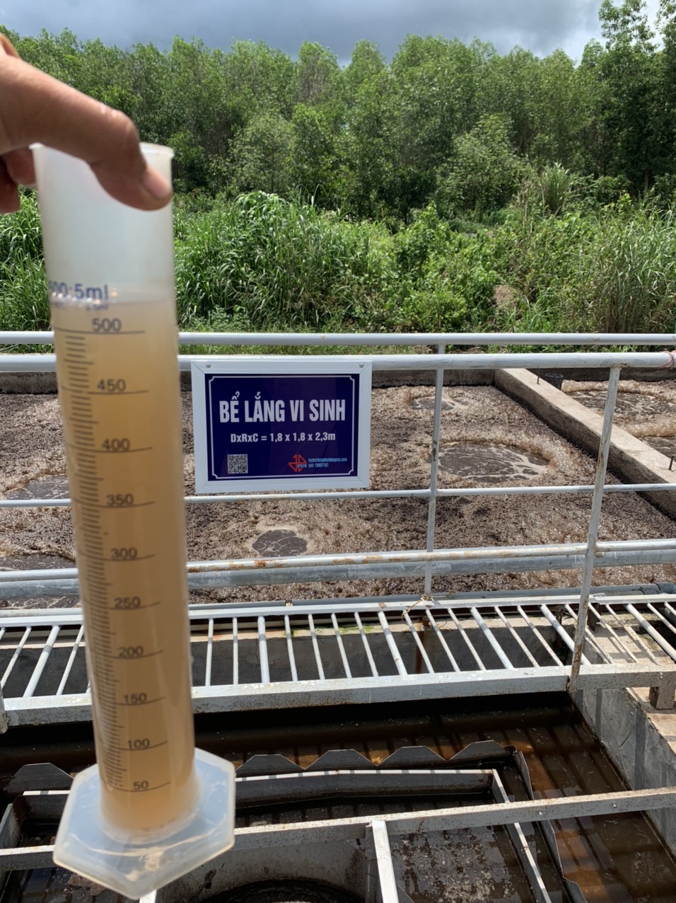Tại đây, các bông cặn hóa lý tạo ra từ quá trình keo tụ - tạo bông được lắng xuống. Phần nước trong thu được sẽ tự chảy qua bể khử trùng. Lượng bùn sinh ra được bơm về bể chứa bùn để đem đi xử lý.