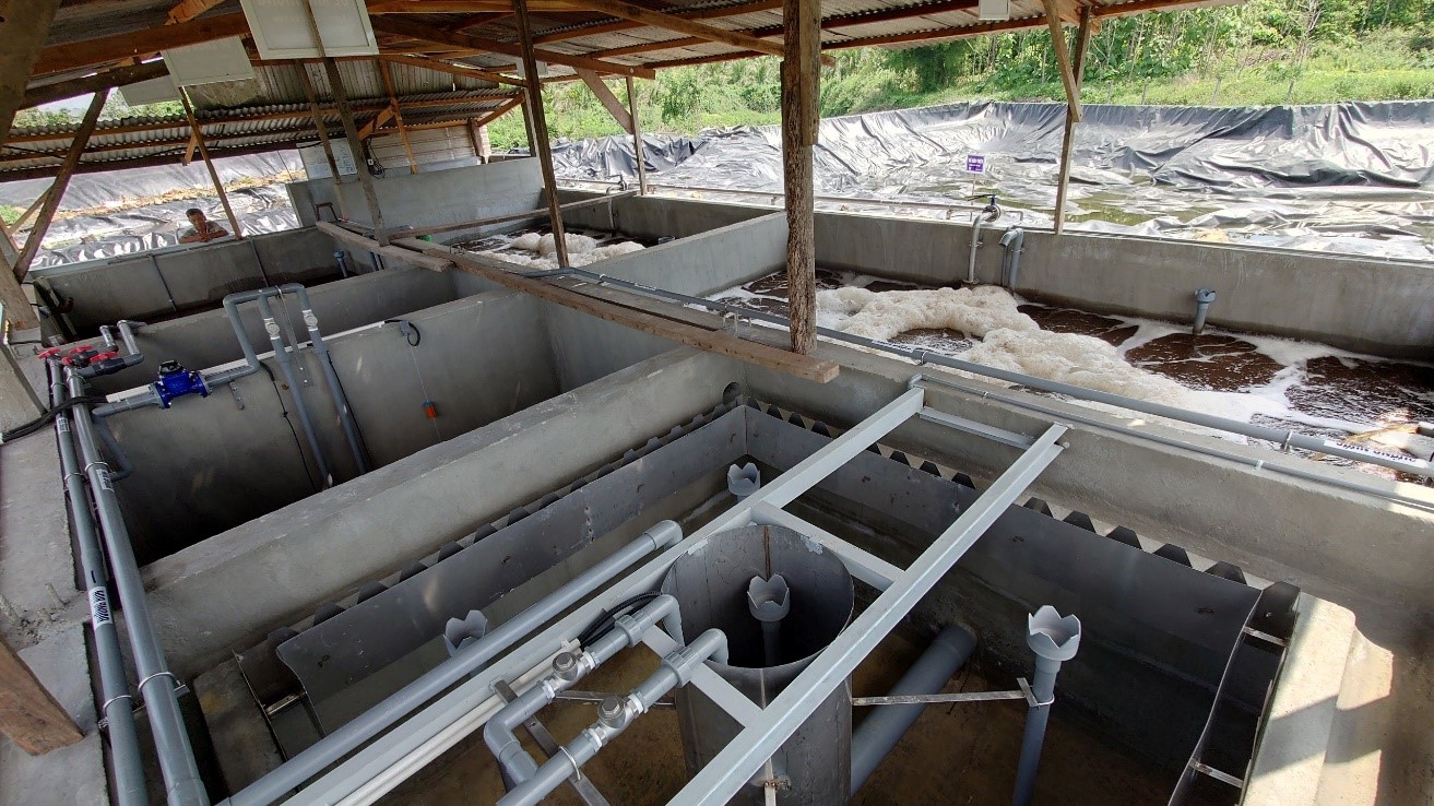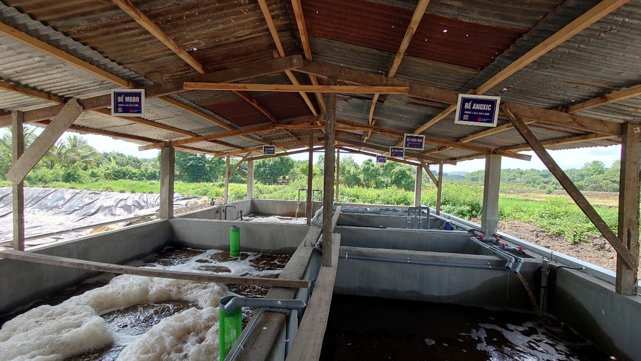 Nước thải phát sinh toàn dự án theo hệ thống thu gom về hầm Biogas. Tại đây, nước thải được lưu lại với thời gian khoảng 30-45 ngày để phân hủy kỵ khí. Nước thải sau khi qua hầm Biogas thì được đưa qua hồ sinh học 1 & 2 để tiếp tục đi vào hệ thống xử lý.