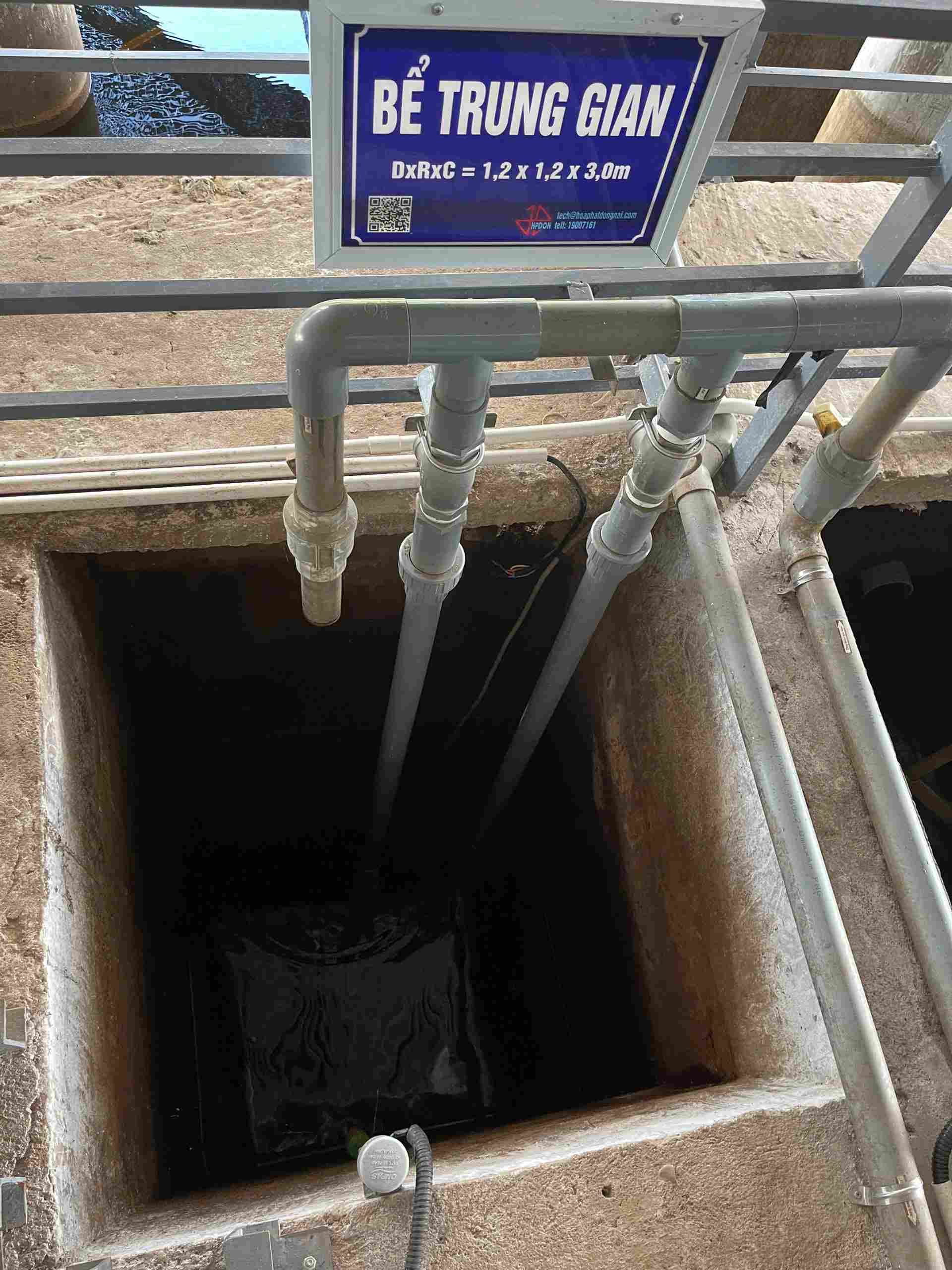 Nhiệm vụ của bể trung gian là thu gom nước thải từ bể lắng sinh học, giúp ổn định tính chất nước thải trước khi bơm qua bể keo tụ - tạo bông.