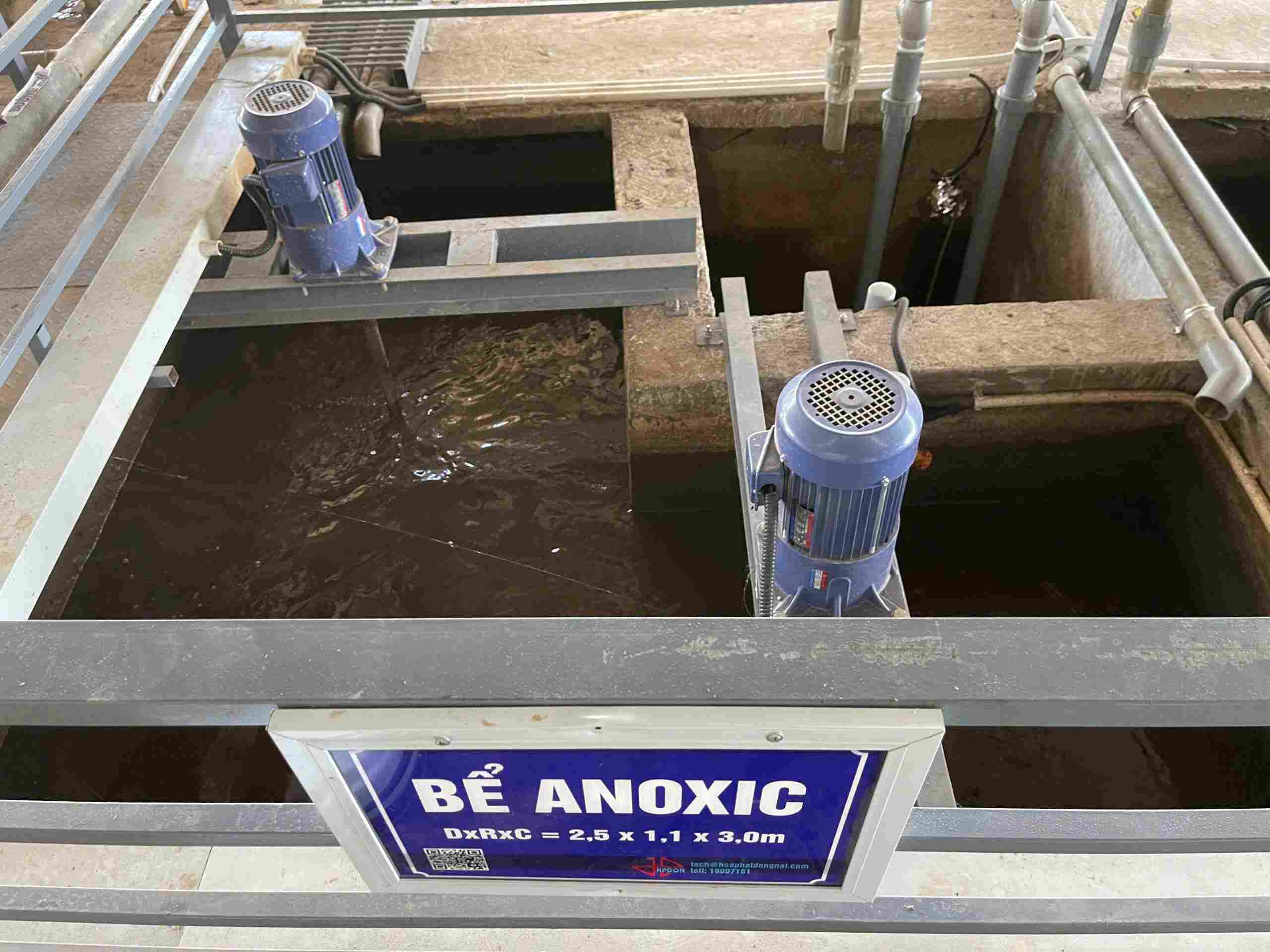 Bể anoxic có có nhiệm vụ khử Nitơ. Các vi khuẩn hiện diện trong nước thải tồn tại ở dạng lơ lửng do tác động của dòng chảy.