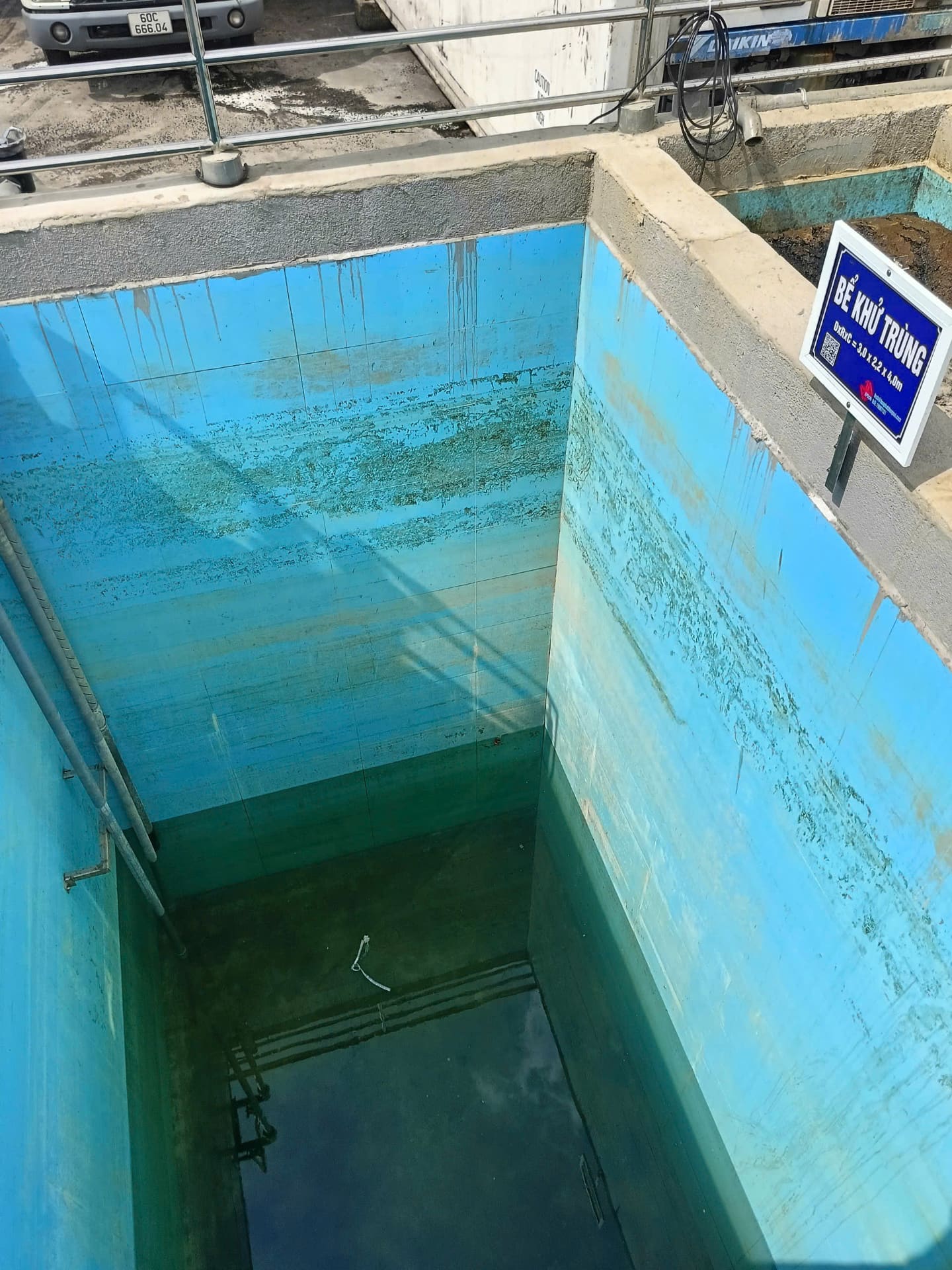Để đảm bảo các chỉ tiêu vi sinh, nước sau lắng sẽ được dẫn đến bể khử trùng để khử trùng trước khi được dẫn vào hồ sinh học.
