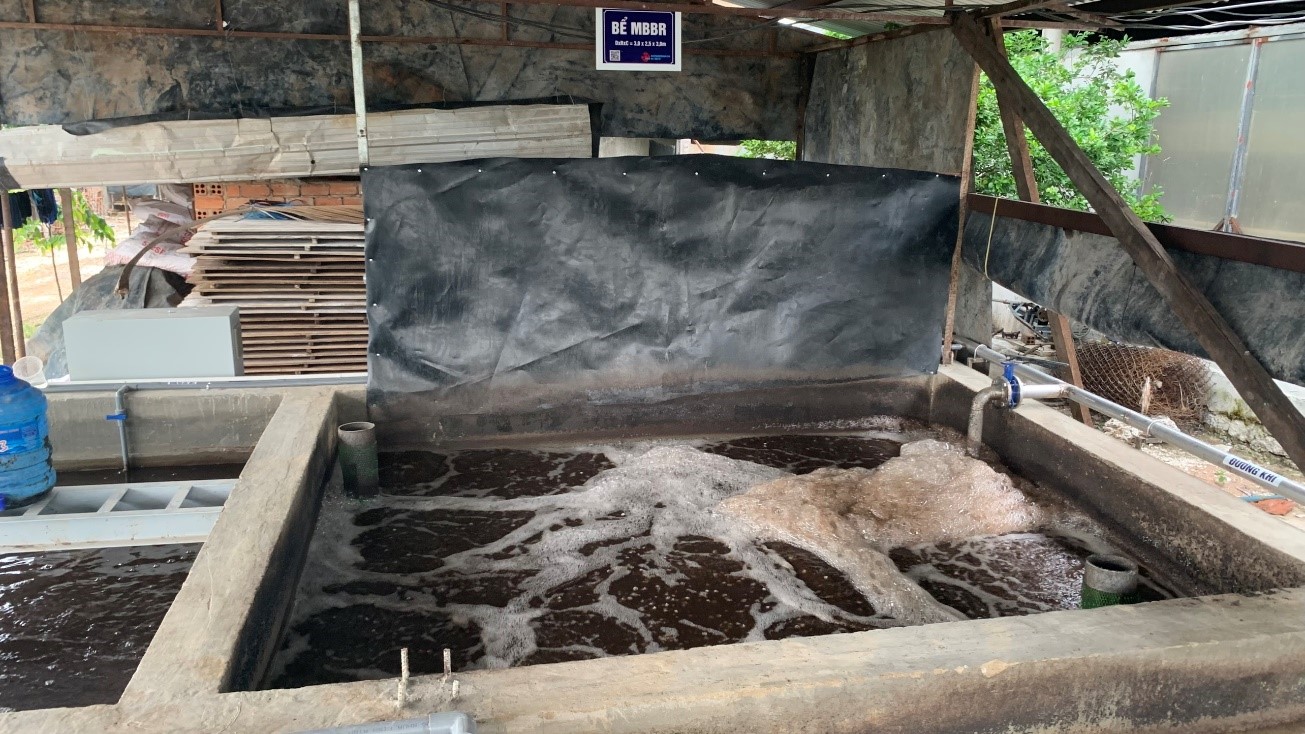 Nước thải phát sinh toàn dự án theo hệ thống thu gom về hầm Biogas. Tại đây, nước thải được lưu lại với thời gian khoảng 30-45 ngày để phân hủy kỵ khí. Nước thải sau khi qua hầm Biogas thì được đưa qua hồ sinh học 1 & 2 để tiếp tục đi vào hệ thống xử lý.