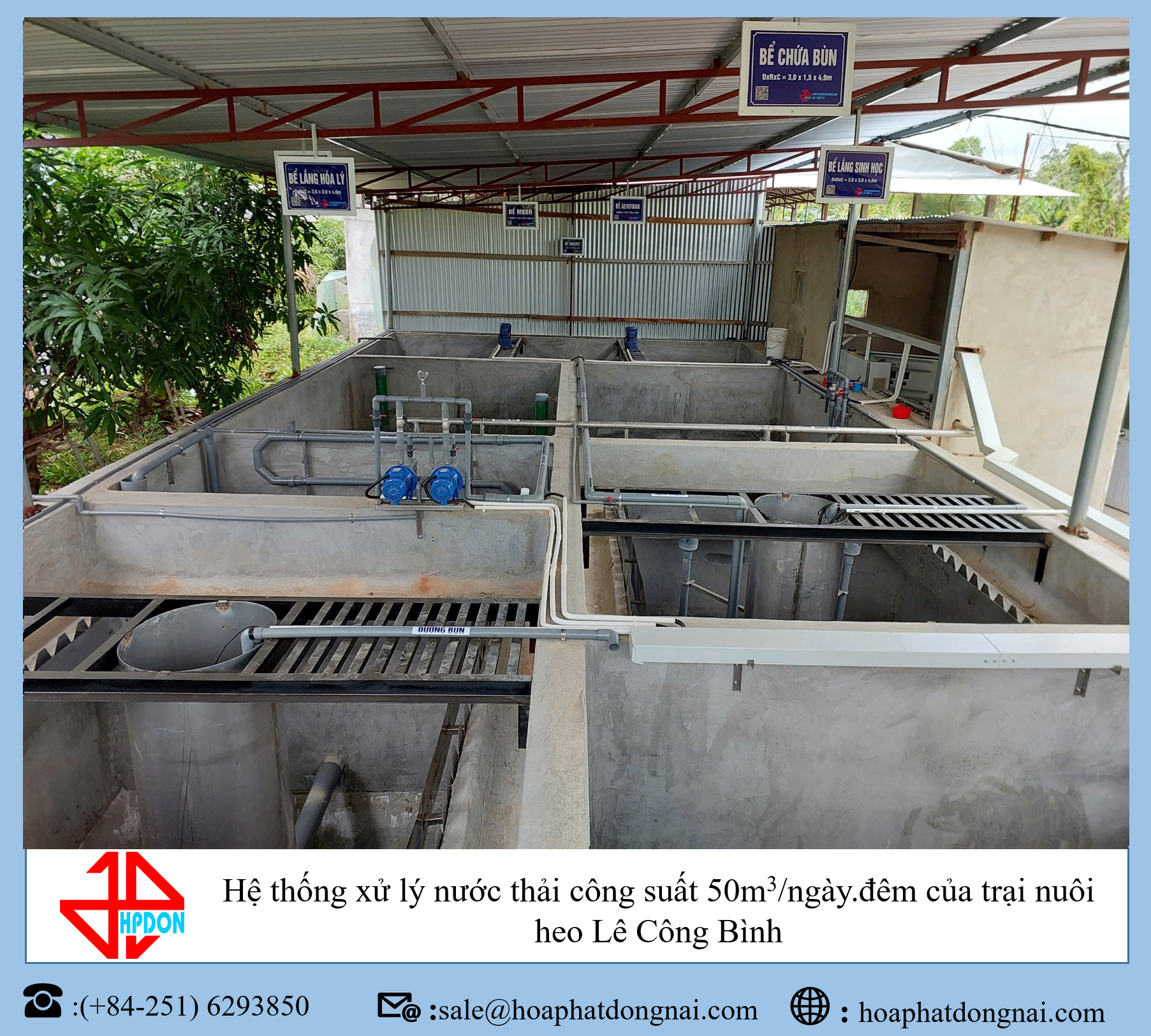 1. Công suất hệ thống: 50m³/ngày.đêm, thiết kế riêng cho trại nuôi heo Lê Công Bình