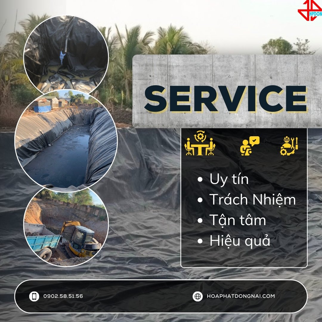 -Hóa Phát Đồng Nai cung cấp dịch vụ toàn diện trong lĩnh vực thiết kế, cung cấp và thi công bạt chống thấm HDPE (High-Density Polyethylene) chất lượng cao. Dịch vụ của chúng tôi bao gồm từ khâu tư vấn kỹ thuật, thiết kế theo yêu cầu, cung cấp bạt HDPE chất lượng cao đến thi công lắp đặt chuyên nghiệp. Chúng tôi cam kết mang đến giải pháp chống thấm hiệu quả, bền vững, phù hợp cho mọi ứng dụng từ hồ chứa nước, bãi rác, đến các công trình xây dựng, hệ thống xử lý nước thải và thủy lợi.